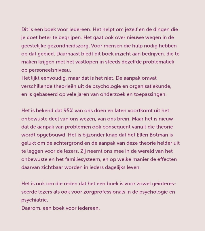 In het boek wordt uitgelegd welke invloed jouw familie en opvoeders hebben op wie je nu bent. Er worden vijf dynamieken beschreven die iedereen in meer of mindere mate meekrijgt vanuit zijn familie. Ook wordt beschreven hoe je, als je door een van de dynamieken problemen ervaart, uit de dynamiek kunt stappen zonder de band met je familie te verbreken.